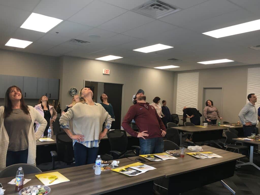 Innovative Benefit Planning has partnered with Strive Physical Therapy to combat the ill effects of a sedentary lifestyle. On Friday, May 18th Jason Melnyk from Strive met with Innovative Benefit Planning employees to educate the team on all of the intricacies of desk ergonomics during their “DeskFit” lecture. The “DeskFit” session taught employees how to optimize their working environment to prevent common pains and strains associated with sitting at a desk for a prolonged period of time. The Strive team also shared a number a yoga stretches employees can incorporate into their day that can be completed right at their desk. The Innovative team was very receptive to the program and we look forward to bringing Strive back and opening our in-house training facility to the public for another learning session. Stay tuned for a formal program announcement. For a complete list of all of our upcoming programs.